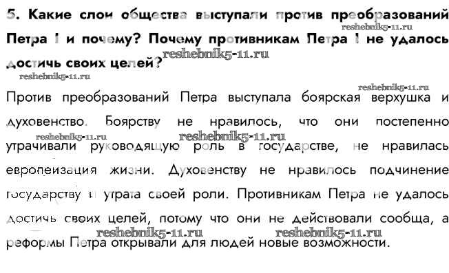 Готовая домашняя работа с ответами по Истории за 8 класс Арсентьев, Курукин, Данилов Учебник Часть 1, 2 Просвещение 2016 ФГОС - Повторяем и делаем выводы 5