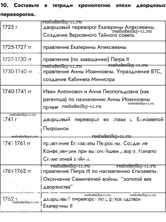 Готовая домашняя работа с ответами по Истории за 8 класс Арсентьев, Курукин, Данилов Учебник Часть 1, 2 Просвещение 2016 ФГОС - Вопросы и задания 10