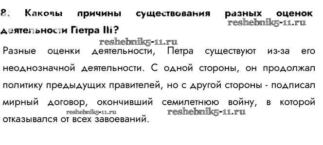 История за 8 класс Арсентьев Учебник Просвещение вопрос, задание 8