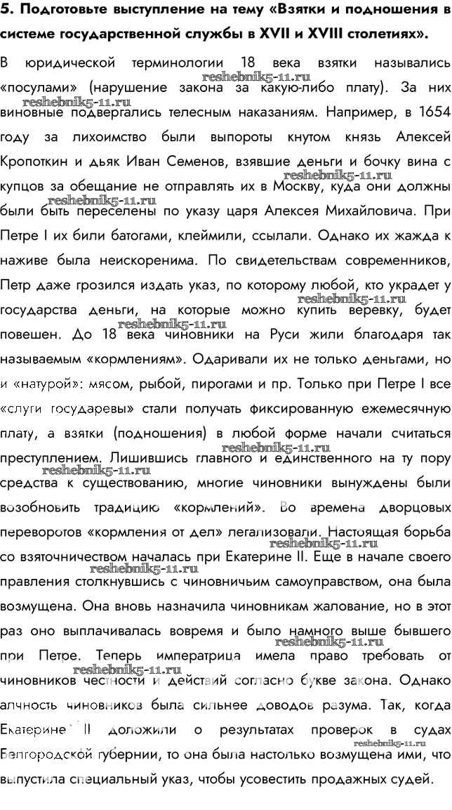 Готовая домашняя работа с ответами по Истории за 8 класс Арсентьев, Курукин, Данилов Учебник Часть 1, 2 Просвещение 2016 ФГОС - Думаем, сравниваем, размышляем 5
