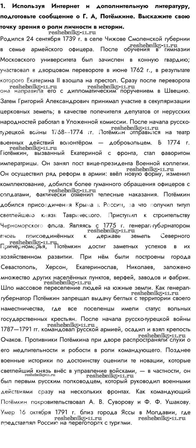 Готовая домашняя работа с ответами по Истории за 8 класс Арсентьев, Курукин, Данилов Учебник Часть 1, 2 Просвещение 2016 ФГОС - Думаем, сравниваем, размышляем 1