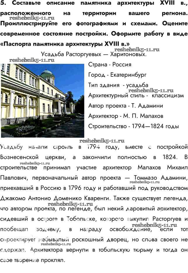 Решебник / глава 5 / русская архитектура XVIII в. / думаем, сравниваем, размышляем / 5