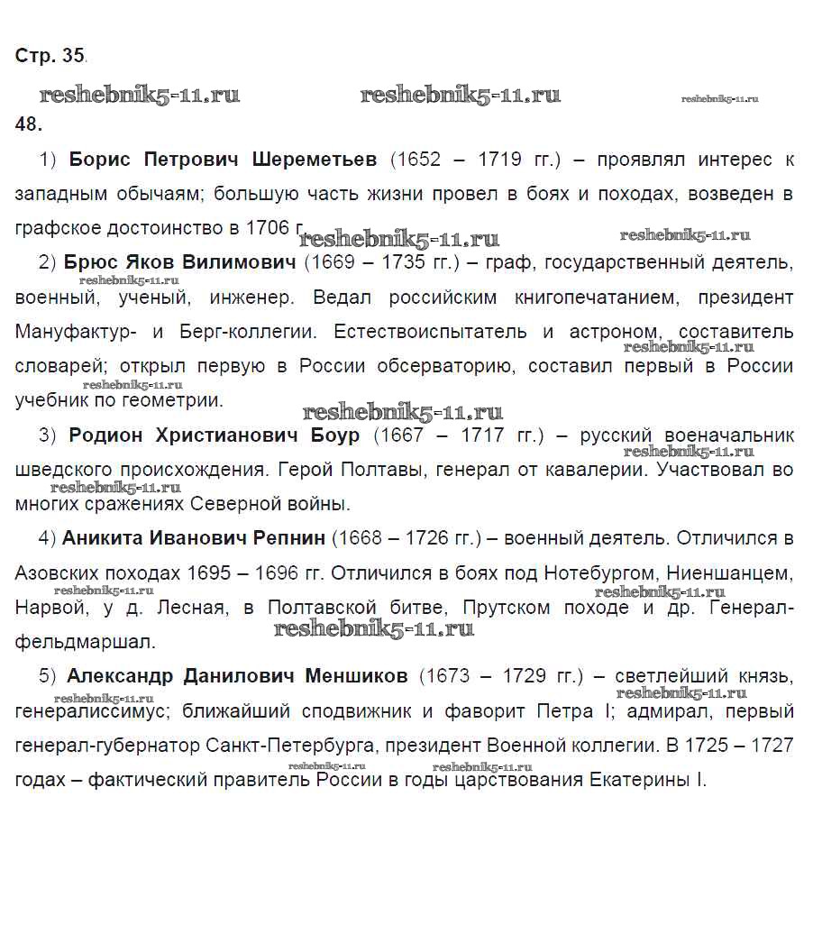 Готовая домашняя работа с ответами по Истории за 8 класс Кочегаров Рабочая тетрадь Инновационная школа Русское слово 2017 ФГОС - Страницы 35