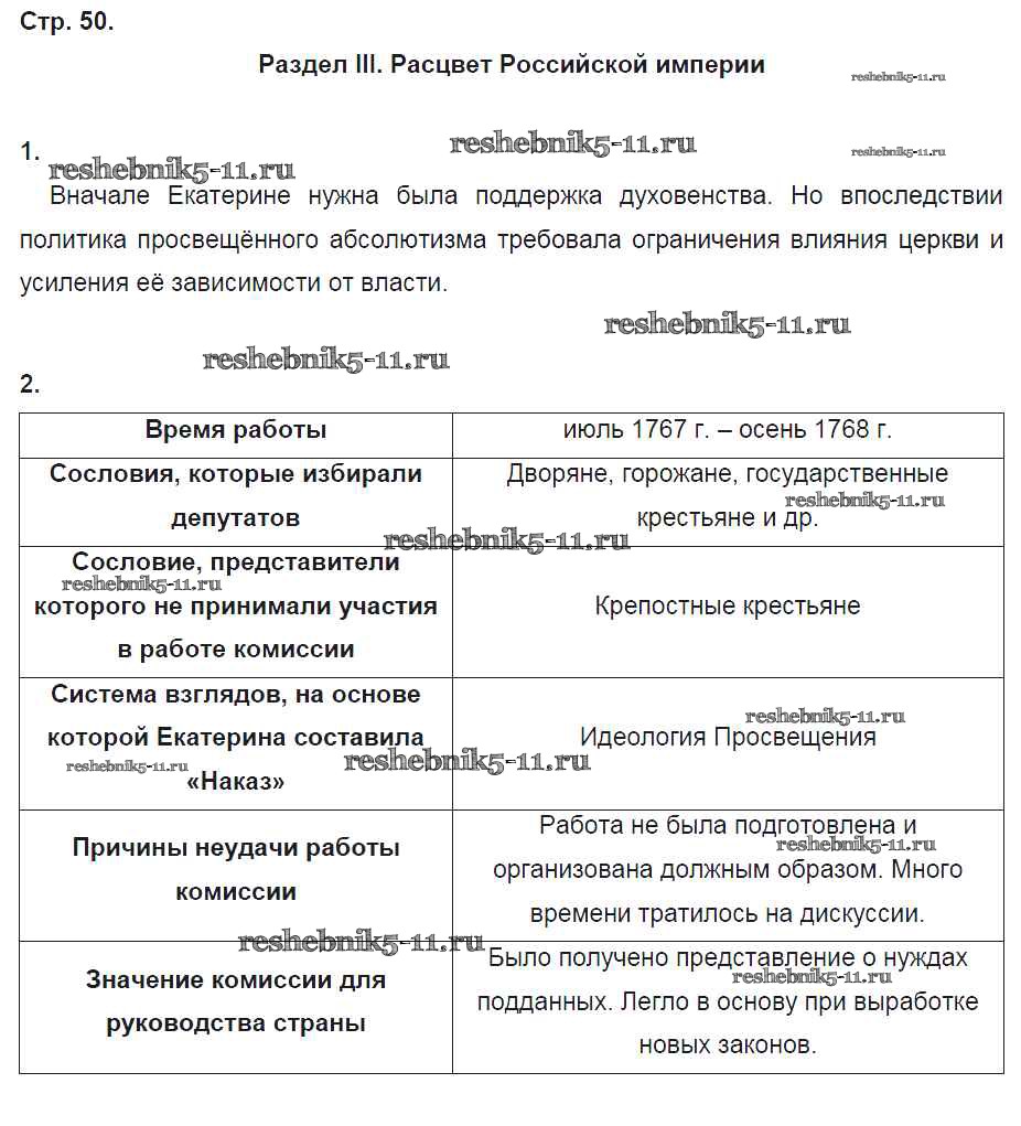 Готовая домашняя работа с ответами по Истории за 8 класс Кочегаров Рабочая тетрадь Инновационная школа Русское слово 2017 ФГОС - Страницы 50