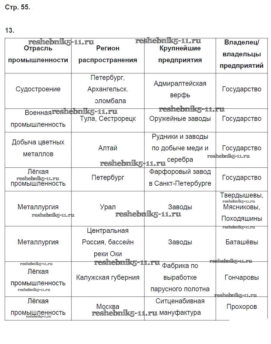 Готовая домашняя работа с ответами по Истории за 8 класс Кочегаров Рабочая тетрадь Инновационная школа Русское слово 2017 ФГОС - Страницы 55