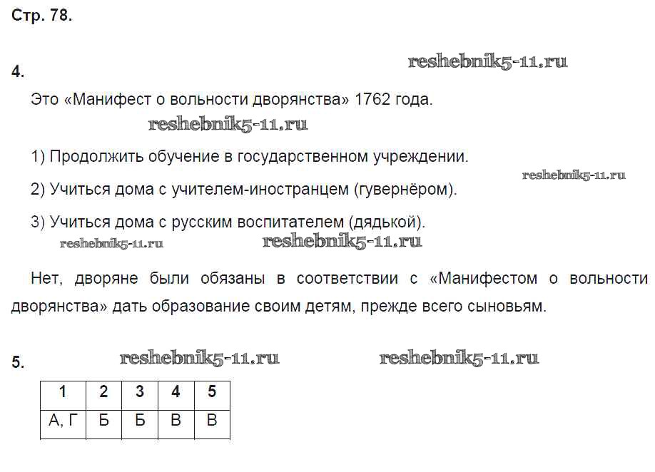 Готовая домашняя работа с ответами по Истории за 8 класс Кочегаров Рабочая тетрадь Инновационная школа Русское слово 2017 ФГОС - Страницы 78