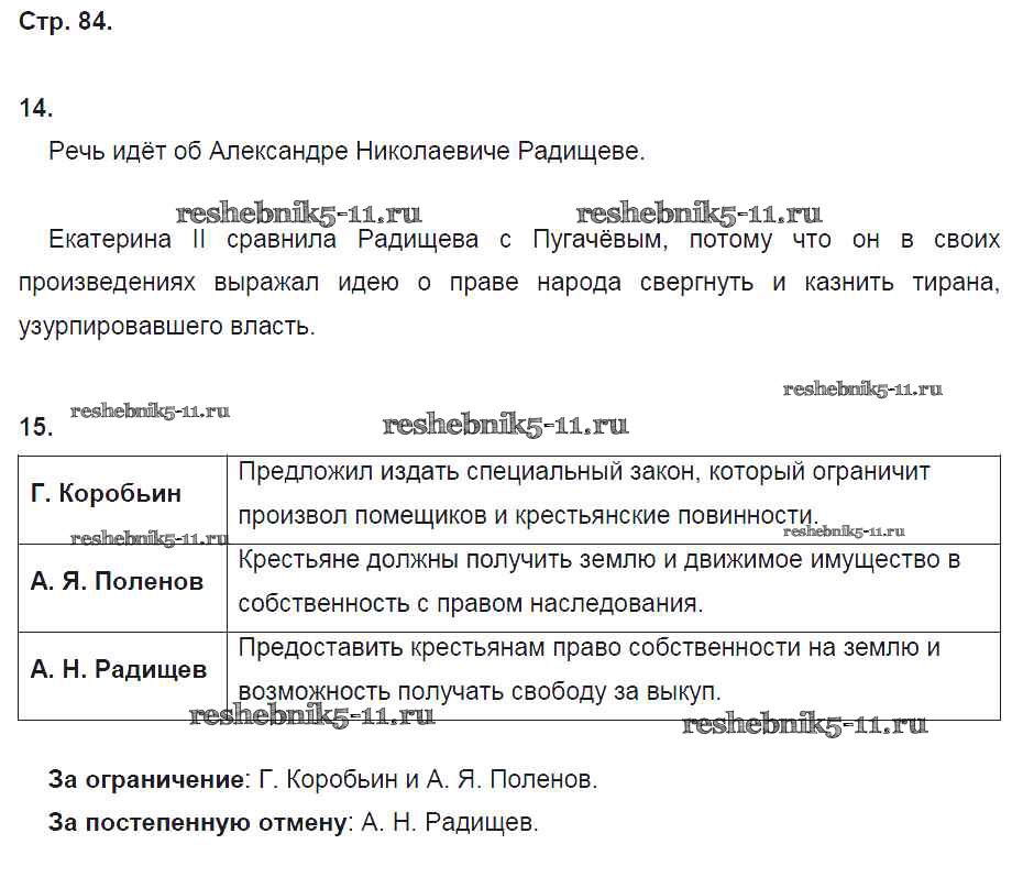 Готовая домашняя работа с ответами по Истории за 8 класс Кочегаров Рабочая тетрадь Инновационная школа Русское слово 2017 ФГОС - Страницы 84
