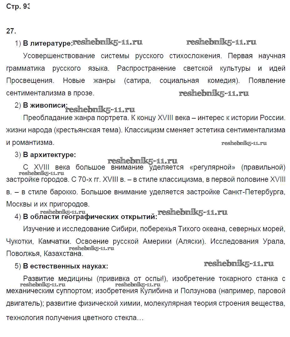 Готовая домашняя работа с ответами по Истории за 8 класс Кочегаров Рабочая тетрадь Инновационная школа Русское слово 2017 ФГОС - Страницы 93