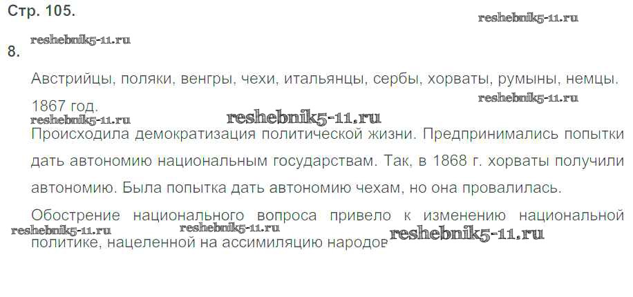 Готовая домашняя работа с ответами по Истории за 8 класс Лазарева Тетрадь-тренажер Сферы Просвещение 2017 ФГОС - Страницы 105