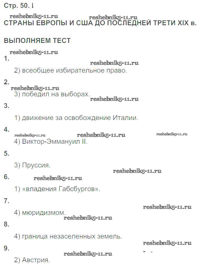 Готовая домашняя работа с ответами по Истории за 8 класс Лазарева Тетрадь-тренажер Сферы Просвещение 2017 ФГОС - Страницы 50