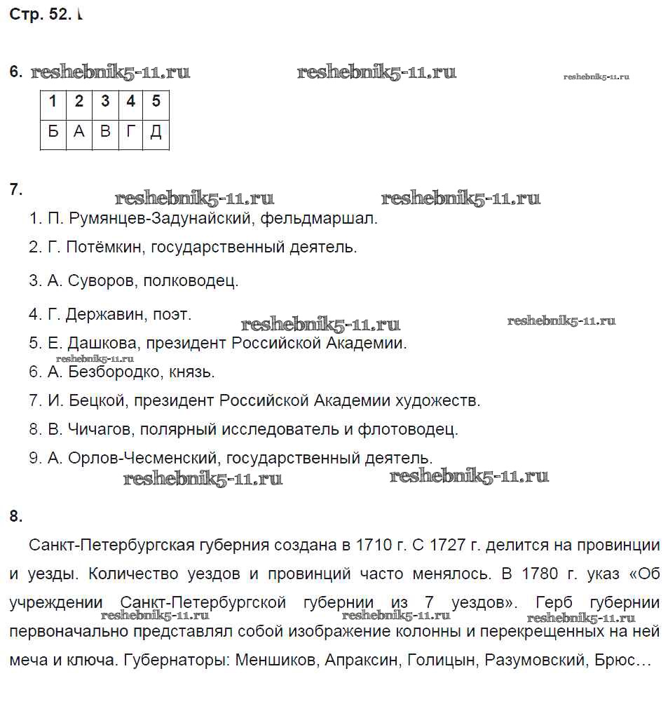 Готовая домашняя работа с ответами по Истории за 8 класс Симонова, Клоков Рабочая тетрадь УМК Дрофа 2019 ФГОС - Страницы 52