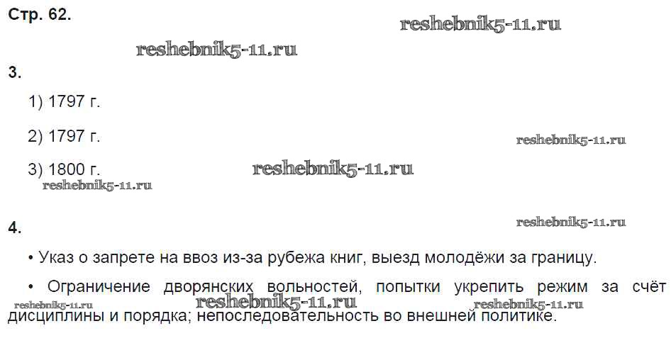 Готовая домашняя работа с ответами по Истории за 8 класс Симонова, Клоков Рабочая тетрадь УМК Дрофа 2019 ФГОС - Страницы 62