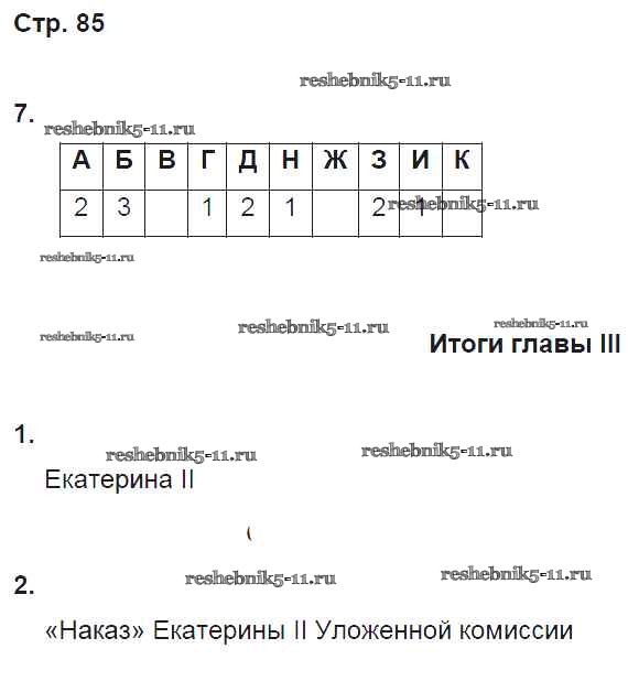 История за 8 класс Симонова Рабочая тетрадь УМК Дрофа страница 85