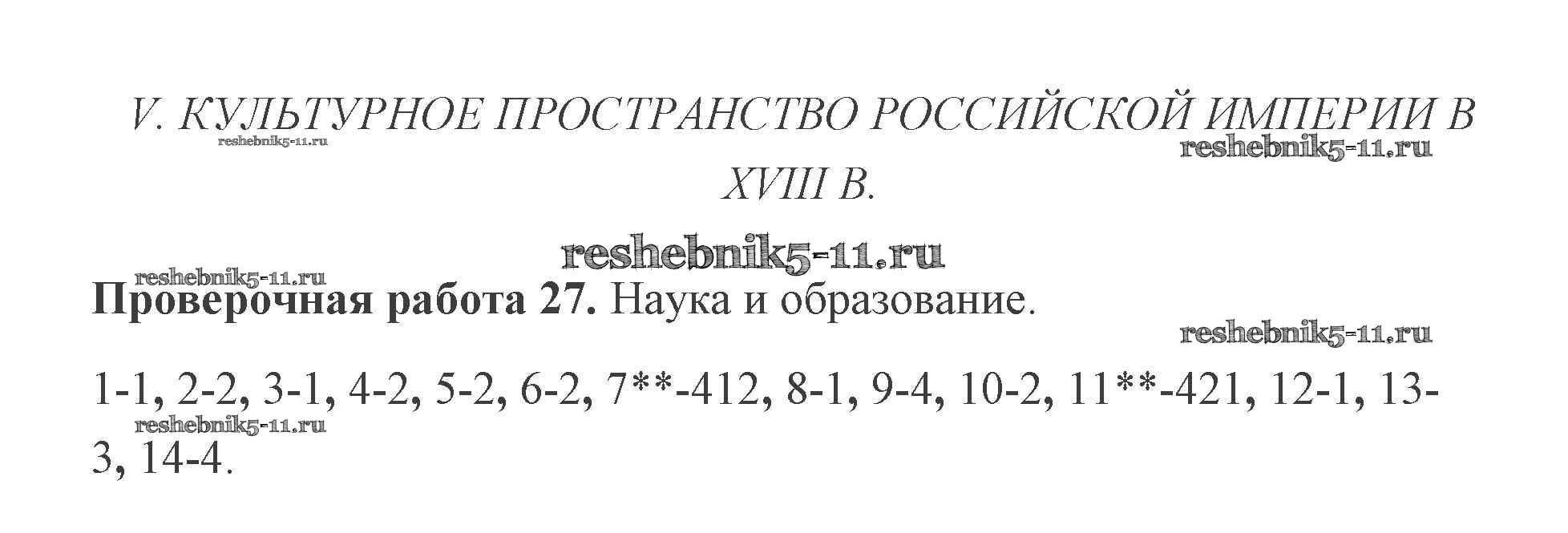 Готовая домашняя работа с ответами по Истории за 8 класс Соловьев Проверочные работы УМК Экзамен 2019 ФГОС - Проверочные работы 27