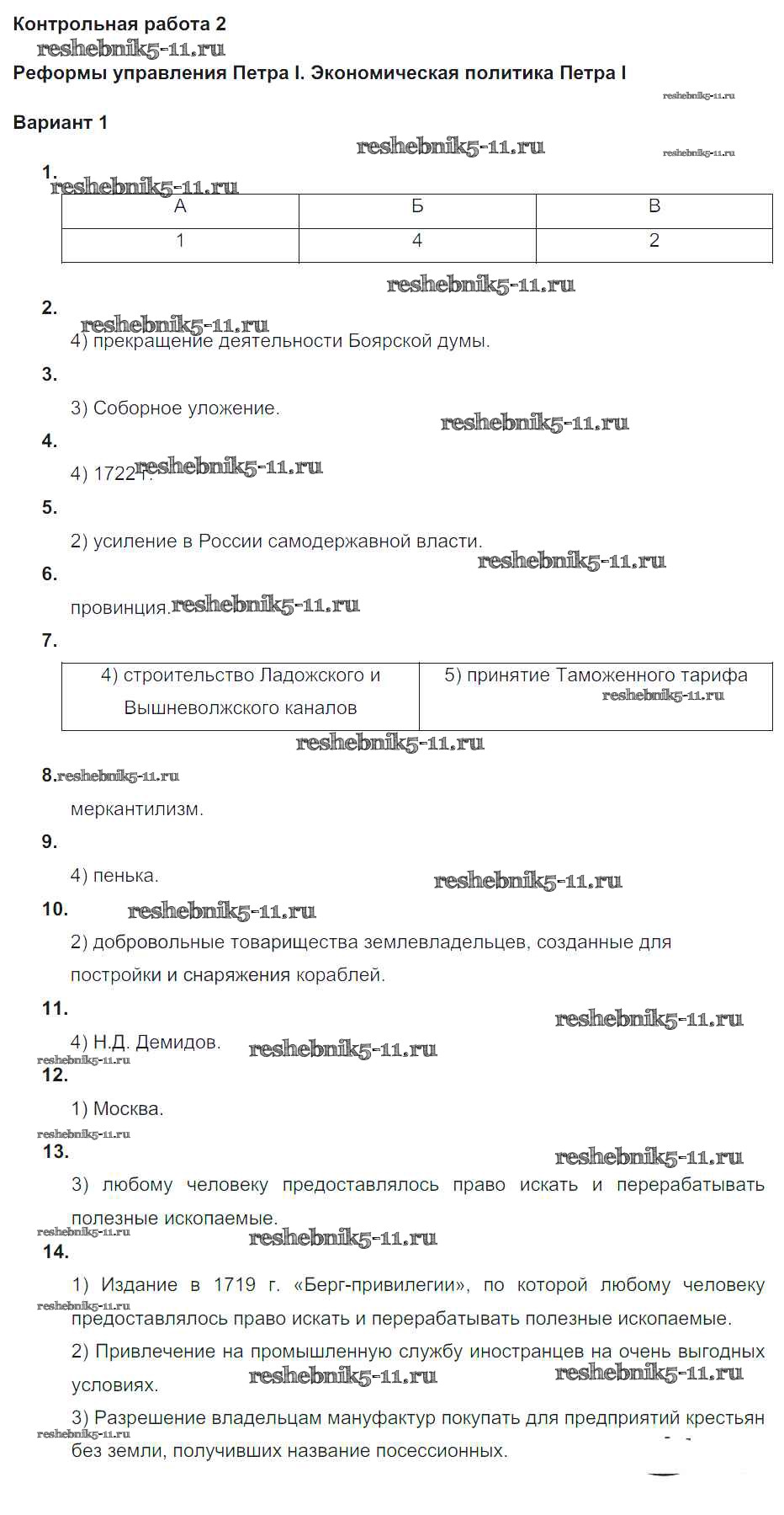Готовая домашняя работа с ответами по Истории за 8 класс Соловьев Контрольные работы УМК Экзамен 2019 ФГОС - КР-2. Варианты 1