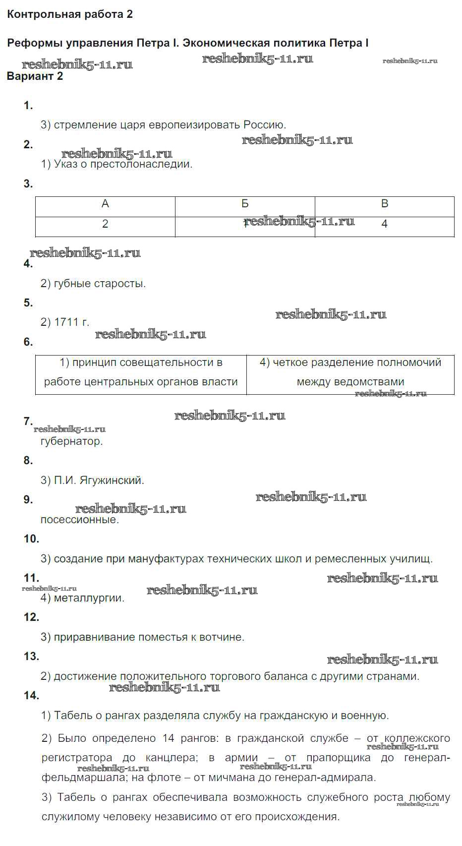 Готовая домашняя работа с ответами по Истории за 8 класс Соловьев Контрольные работы УМК Экзамен 2019 ФГОС - КР-2. Варианты 2
