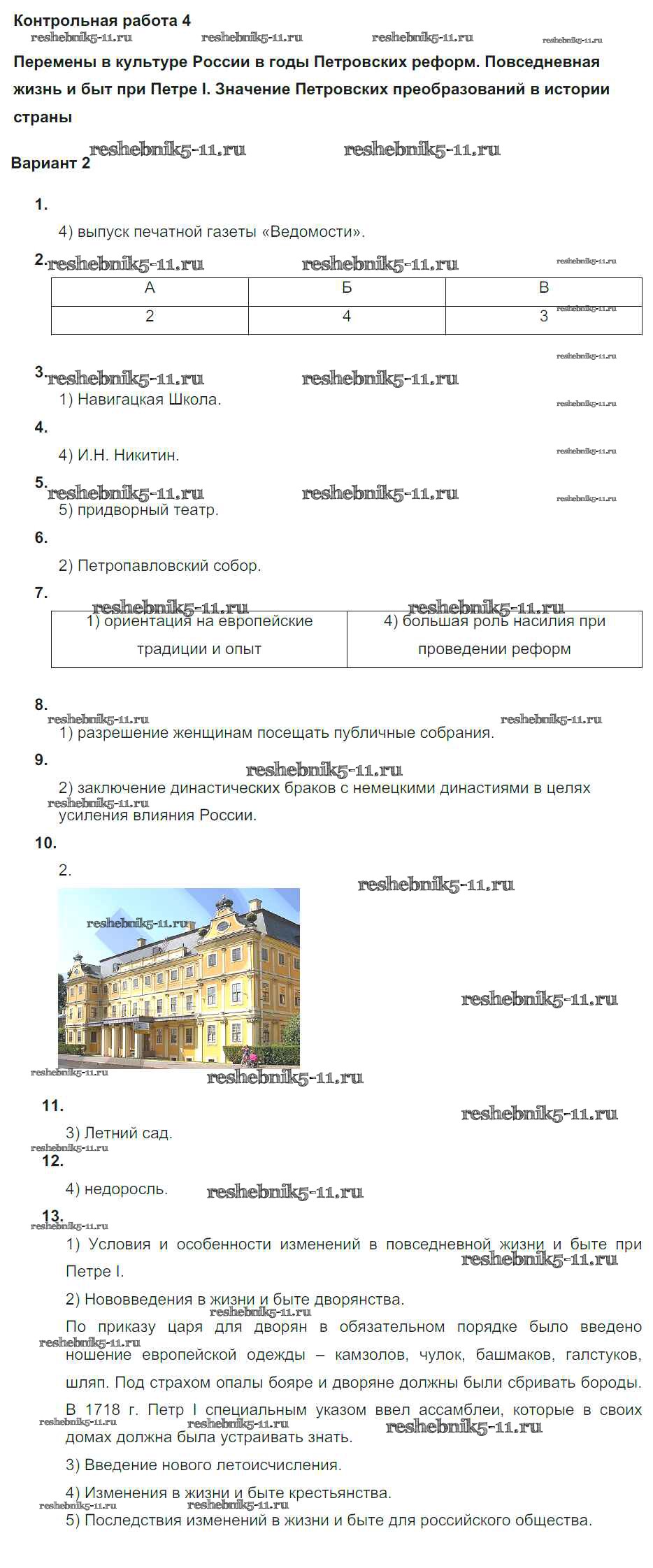 Готовая домашняя работа с ответами по Истории за 8 класс Соловьев Контрольные работы УМК Экзамен 2019 ФГОС - КР-4. Варианты 2