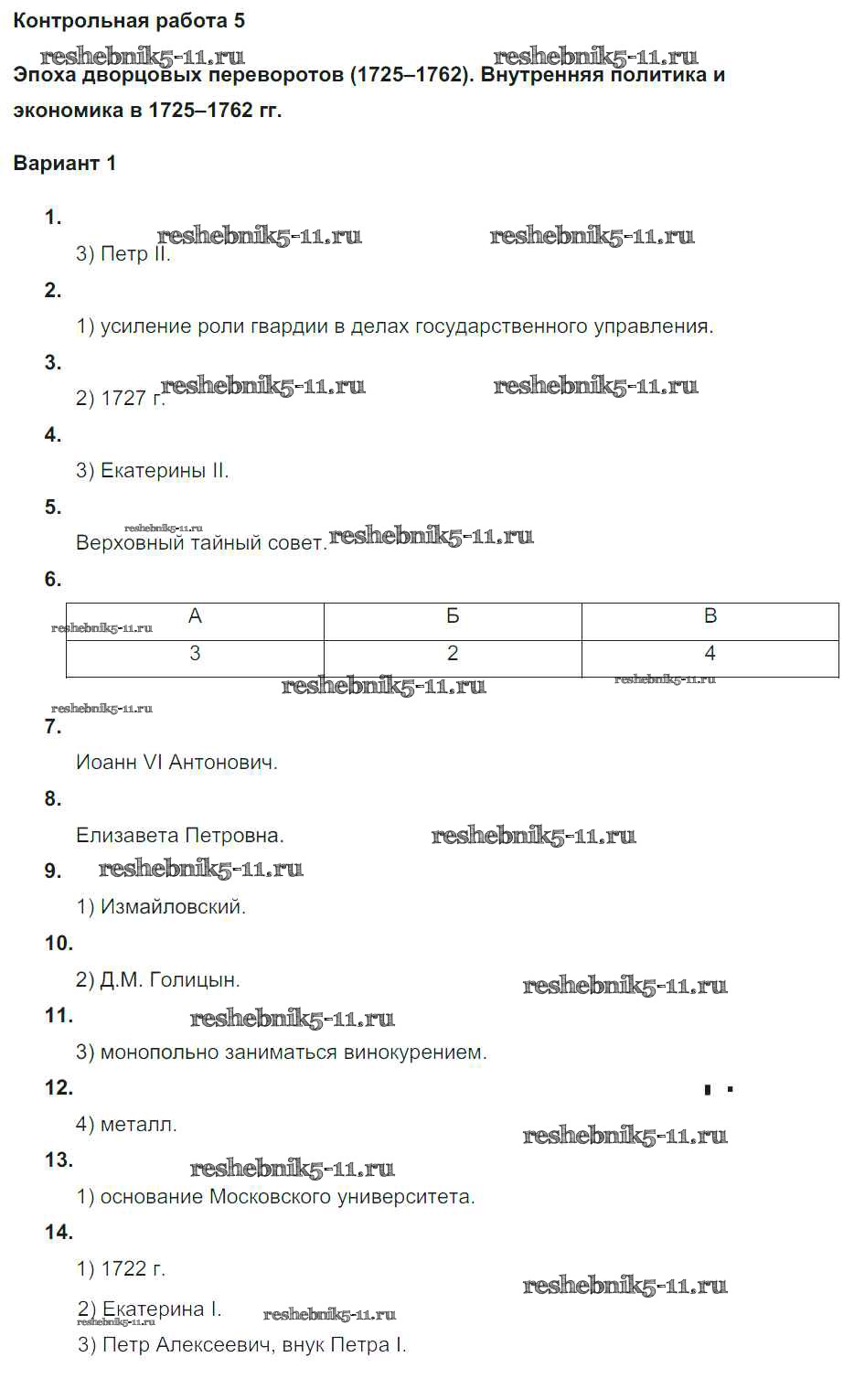 Готовая домашняя работа с ответами по Истории за 8 класс Соловьев Контрольные работы УМК Экзамен 2019 ФГОС - КР-5. Варианты 1