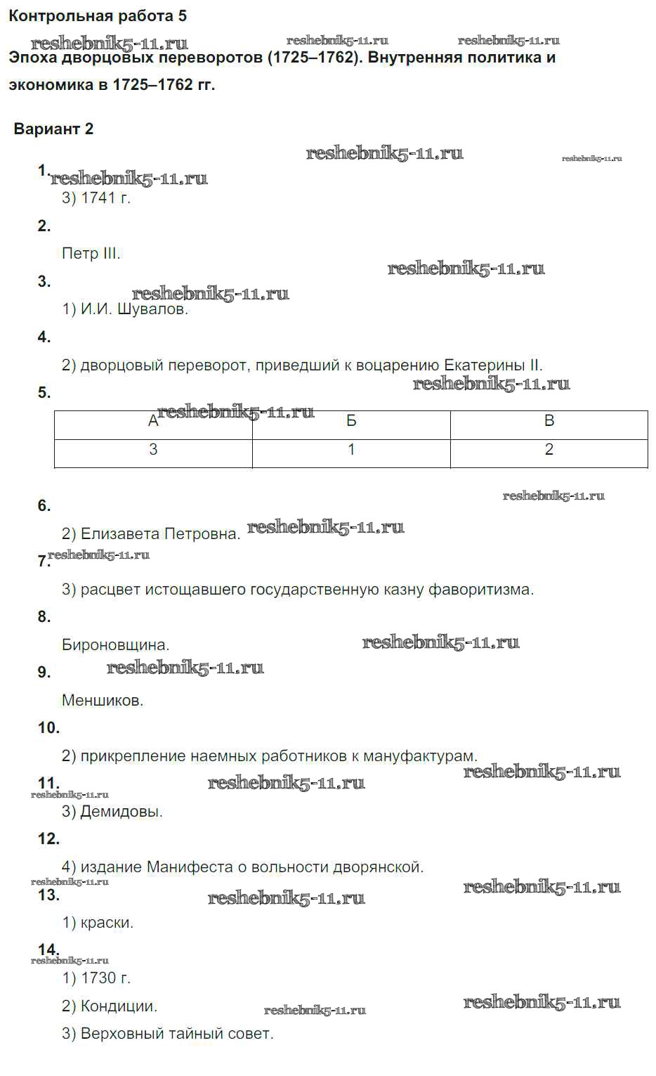 Готовая домашняя работа с ответами по Истории за 8 класс Соловьев Контрольные работы УМК Экзамен 2019 ФГОС - КР-5. Варианты 2