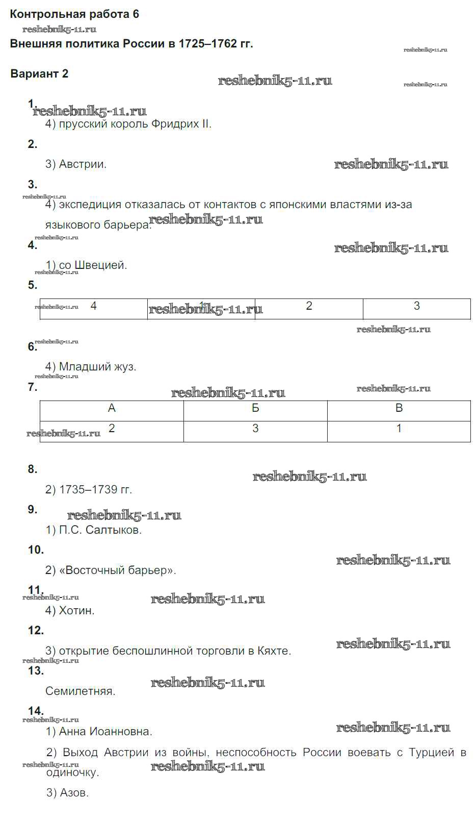 Готовая домашняя работа с ответами по Истории за 8 класс Соловьев Контрольные работы УМК Экзамен 2019 ФГОС - КР-6. Варианты 2