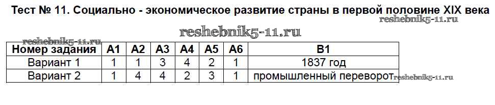 Готовая домашняя работа с ответами по Истории за 8 класс Волкова Контрольно-измерительные материалы (КИМ) ВАКО 2017 ФГОС - Тесты 11