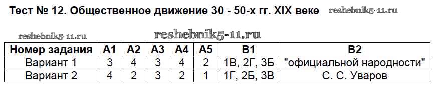 Готовая домашняя работа с ответами по Истории за 8 класс Волкова Контрольно-измерительные материалы (КИМ) ВАКО 2017 ФГОС - Тесты 12