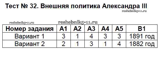 Готовая домашняя работа с ответами по Истории за 8 класс Волкова Контрольно-измерительные материалы (КИМ) ВАКО 2017 ФГОС - Тесты 32