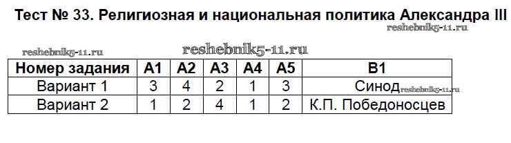 Готовая домашняя работа с ответами по Истории за 8 класс Волкова Контрольно-измерительные материалы (КИМ) ВАКО 2017 ФГОС - Тесты 33