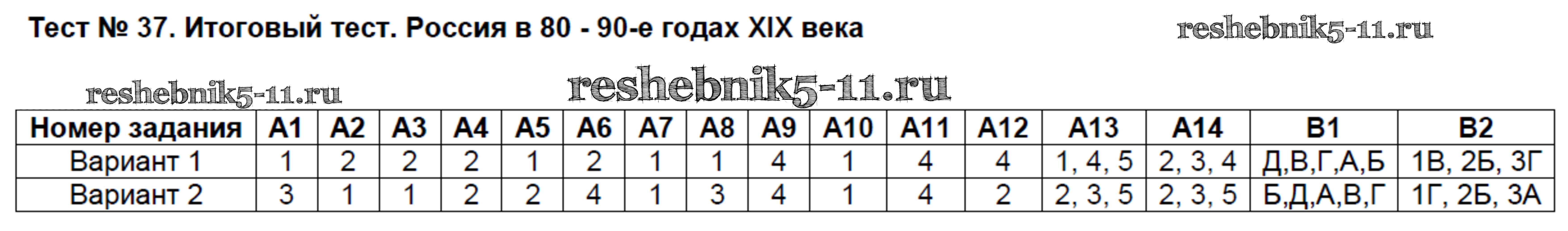 Готовая домашняя работа с ответами по Истории за 8 класс Волкова Контрольно-измерительные материалы (КИМ) ВАКО 2017 ФГОС - Тесты 37