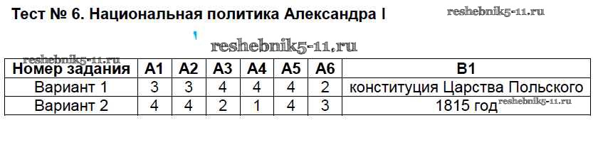 Готовая домашняя работа с ответами по Истории за 8 класс Волкова Контрольно-измерительные материалы (КИМ) ВАКО 2017 ФГОС - Тесты 6