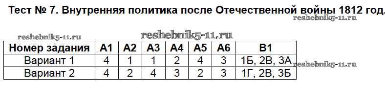 Готовая домашняя работа с ответами по Истории за 8 класс Волкова Контрольно-измерительные материалы (КИМ) ВАКО 2017 ФГОС - Тесты 7