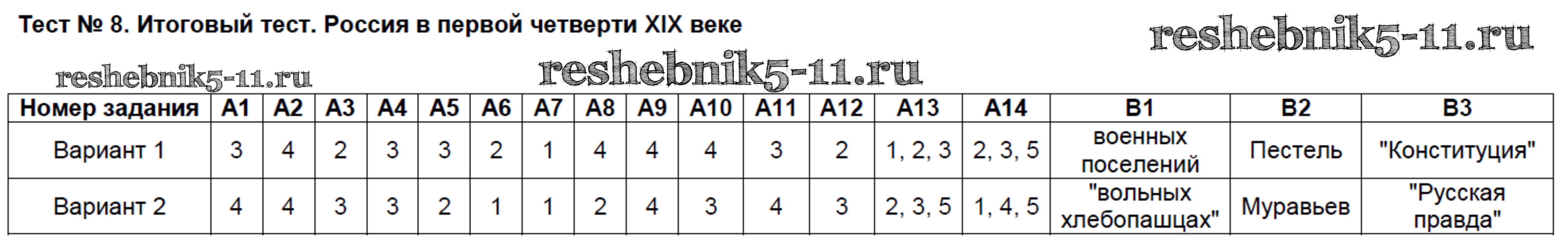 Готовая домашняя работа с ответами по Истории за 8 класс Волкова Контрольно-измерительные материалы (КИМ) ВАКО 2017 ФГОС - Тесты 8