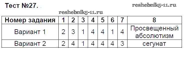 Готовая домашняя работа с ответами по Истории за 8 класс Калачева Контрольно-измерительные материалы (КИМ) Экзамен 2016 ФГОС - Тесты 27