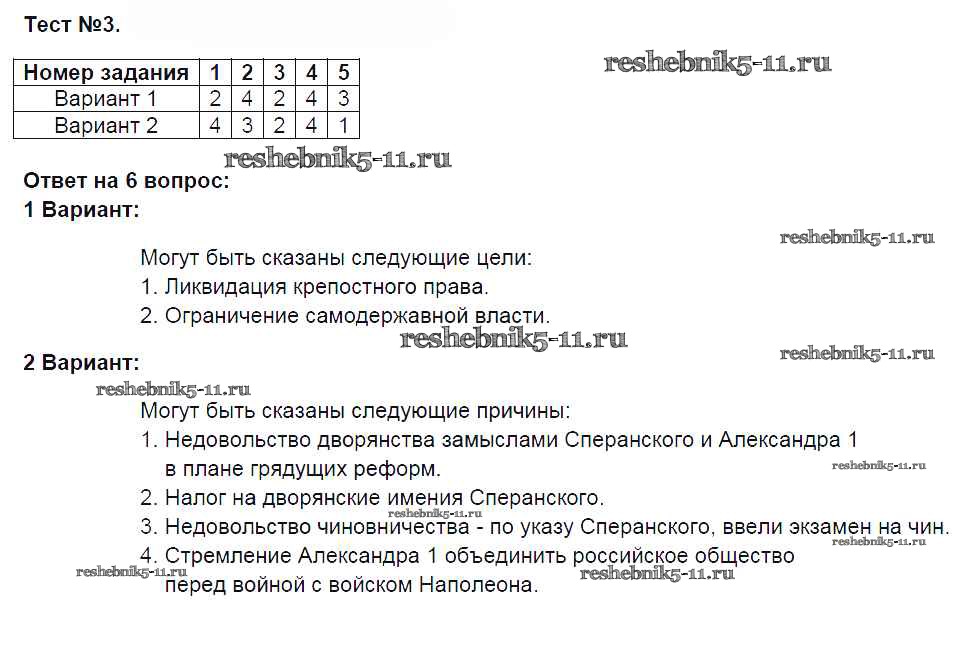Готовая домашняя работа с ответами по Истории за 8 класс Смирнов Контрольно-измерительные материалы (КИМ) Экзамен 2015 ФГОС - Тесты 3
