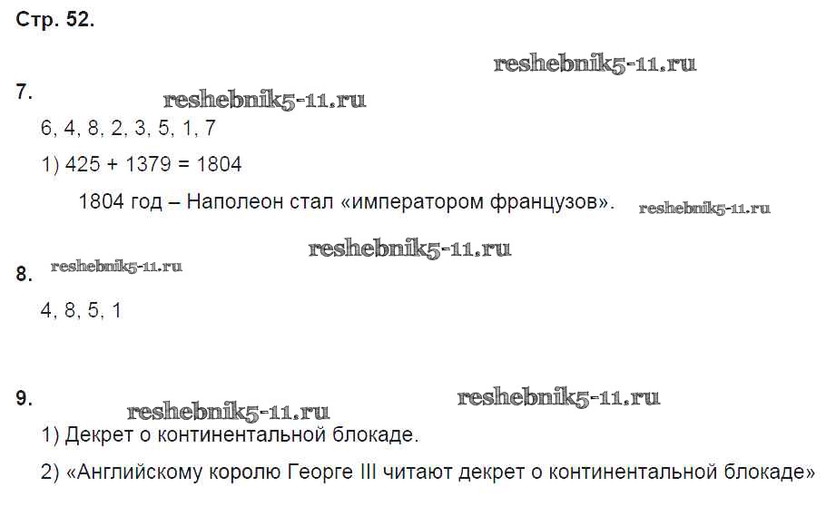 Готовая домашняя работа с ответами по Истории за 8 класс Юдовская, Ванюшкина, Баранов Рабочая тетрадь УМК Часть 1, 2 Просвещение 2017 ФГОС - Часть 1. Страницы 52