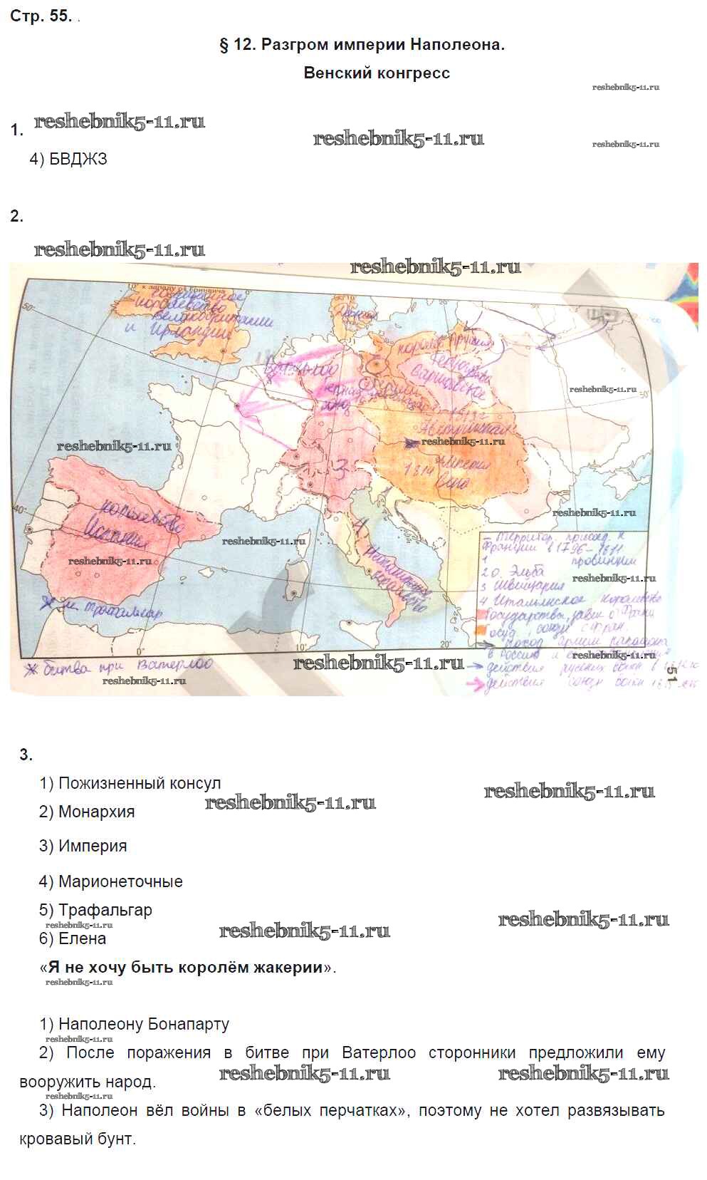 Готовая домашняя работа с ответами по Истории за 8 класс Юдовская, Ванюшкина, Баранов Рабочая тетрадь УМК Часть 1, 2 Просвещение 2017 ФГОС - Часть 1. Страницы 55