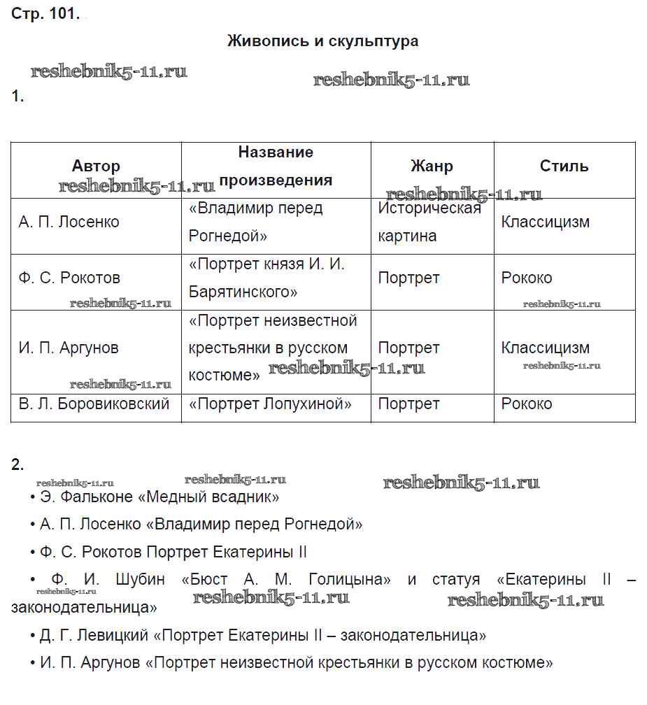 Готовая домашняя работа с ответами по Истории за 8 класс Артасов, Данилов, Косулина, Соколова Рабочая тетрадь УМК Просвещение 2016 ФГОС - Страницы 101