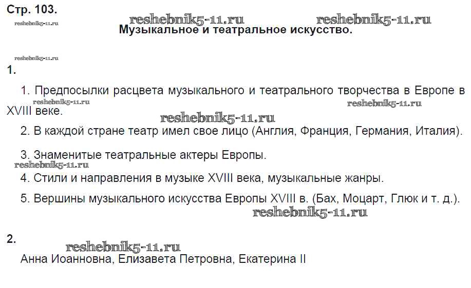 Готовая домашняя работа с ответами по Истории за 8 класс Артасов, Данилов, Косулина, Соколова Рабочая тетрадь УМК Просвещение 2016 ФГОС - Страницы 103