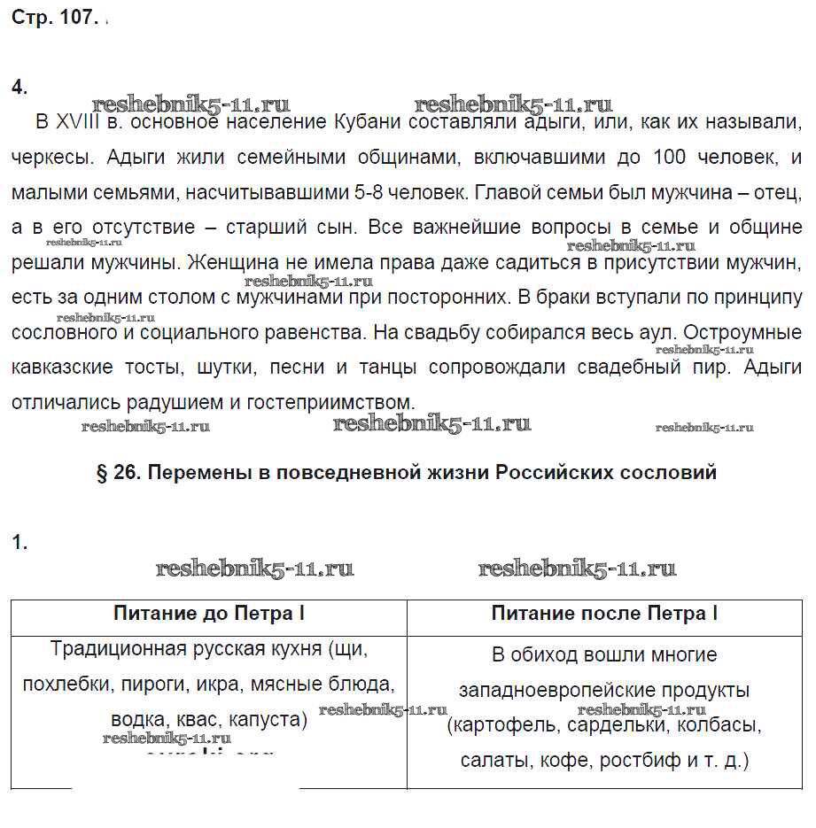 Готовая домашняя работа с ответами по Истории за 8 класс Артасов, Данилов, Косулина, Соколова Рабочая тетрадь УМК Просвещение 2016 ФГОС - Страницы 107