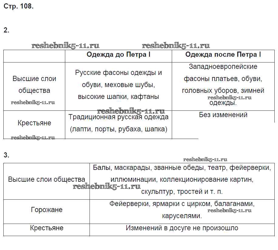 Готовая домашняя работа с ответами по Истории за 8 класс Артасов, Данилов, Косулина, Соколова Рабочая тетрадь УМК Просвещение 2016 ФГОС - Страницы 108
