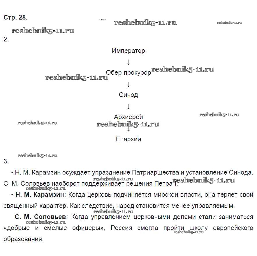 Готовая домашняя работа с ответами по Истории за 8 класс Артасов, Данилов, Косулина, Соколова Рабочая тетрадь УМК Просвещение 2016 ФГОС - Страницы 28