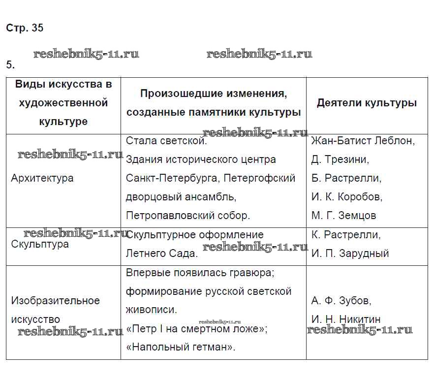 Готовая домашняя работа с ответами по Истории за 8 класс Артасов, Данилов, Косулина, Соколова Рабочая тетрадь УМК Просвещение 2016 ФГОС - Страницы 35