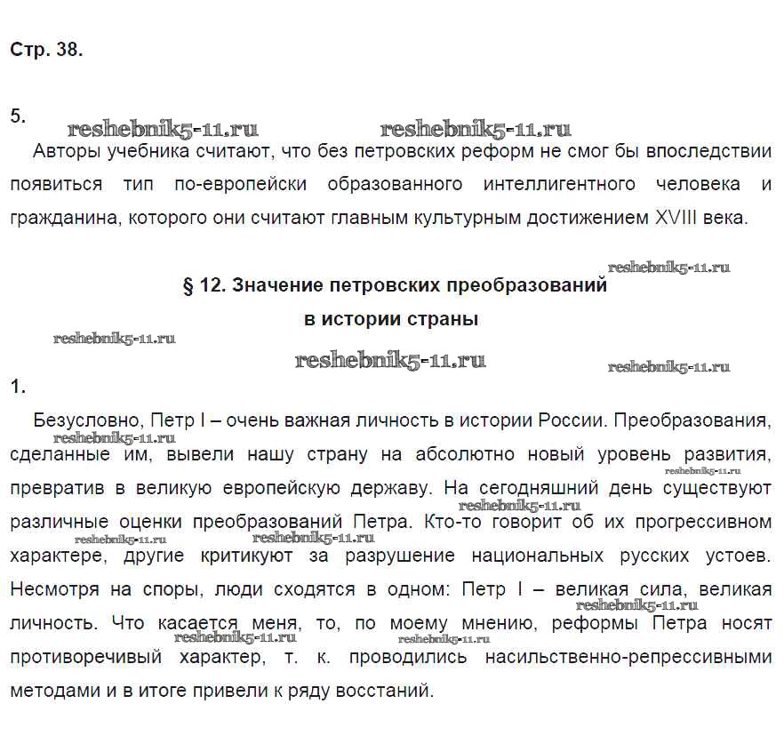 Готовая домашняя работа с ответами по Истории за 8 класс Артасов, Данилов, Косулина, Соколова Рабочая тетрадь УМК Просвещение 2016 ФГОС - Страницы 38
