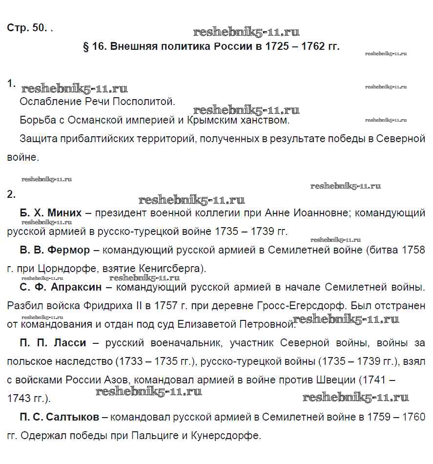 Готовая домашняя работа с ответами по Истории за 8 класс Артасов, Данилов, Косулина, Соколова Рабочая тетрадь УМК Просвещение 2016 ФГОС - Страницы 50