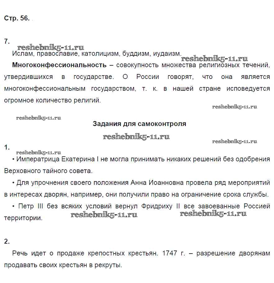 Готовая домашняя работа с ответами по Истории за 8 класс Артасов, Данилов, Косулина, Соколова Рабочая тетрадь УМК Просвещение 2016 ФГОС - Страницы 56