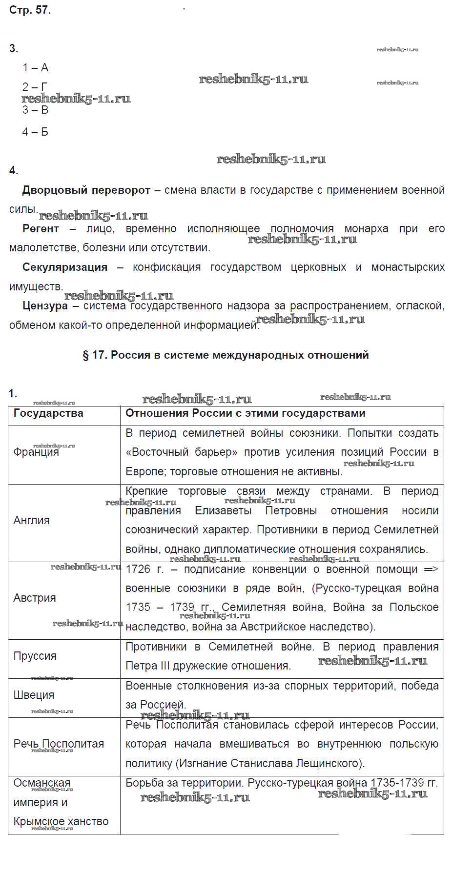 Готовая домашняя работа с ответами по Истории за 8 класс Артасов, Данилов, Косулина, Соколова Рабочая тетрадь УМК Просвещение 2016 ФГОС - Страницы 57