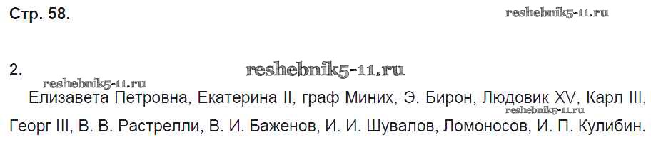 Готовая домашняя работа с ответами по Истории за 8 класс Артасов, Данилов, Косулина, Соколова Рабочая тетрадь УМК Просвещение 2016 ФГОС - Страницы 58