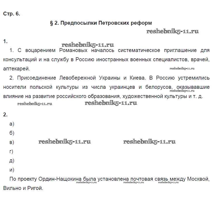 Готовая домашняя работа с ответами по Истории за 8 класс Артасов, Данилов, Косулина, Соколова Рабочая тетрадь УМК Просвещение 2016 ФГОС - Страницы 6