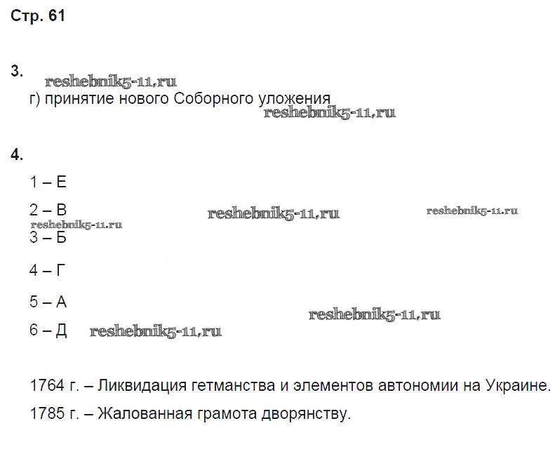Готовая домашняя работа с ответами по Истории за 8 класс Артасов, Данилов, Косулина, Соколова Рабочая тетрадь УМК Просвещение 2016 ФГОС - Страницы 61