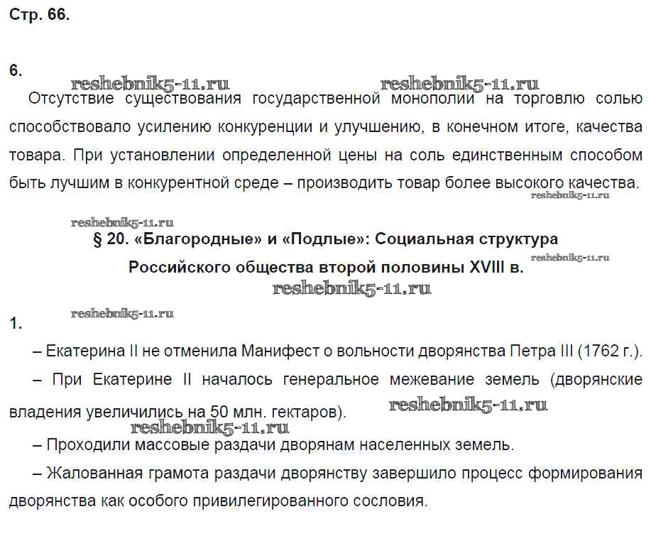 Готовая домашняя работа с ответами по Истории за 8 класс Артасов, Данилов, Косулина, Соколова Рабочая тетрадь УМК Просвещение 2016 ФГОС - Страницы 66